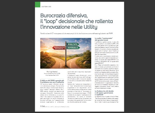 Chi lavora sui sistemi informativi dei servizi a rete (acqua, energia, rifiuti) sa molto bene che, seppur le tecnologie cambino, alcuni ostacoli ideologici restano. Era il 2008 quando, durante una sessione del convegno MondoGIS, l’attenzione della platea veniva richiamata su un punto focale: il vero ostacolo al successo dei progetti tecnologici non era la mancanza di strumenti software, ma l’incapacità delle strutture organizzative di collaborare, condividere dati e assumersi responsabilità trasversali.