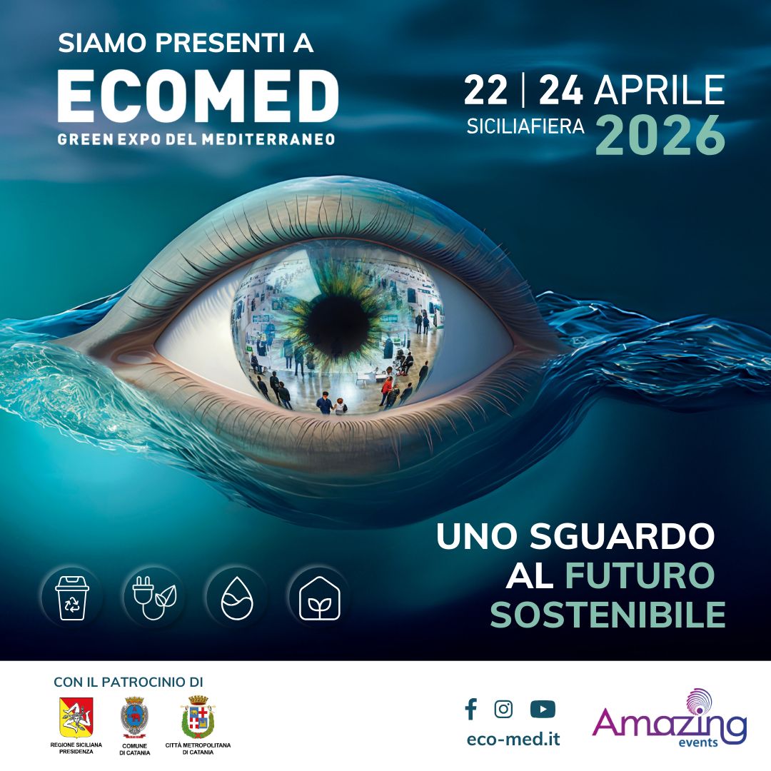 Dal 22 al 24 aprile 2026 saremo a Catania per ECOMED, il Green Expo del Mediterraneo dedicato a tecnologie e sostenibilità ambientale. Vieni a trovarci!